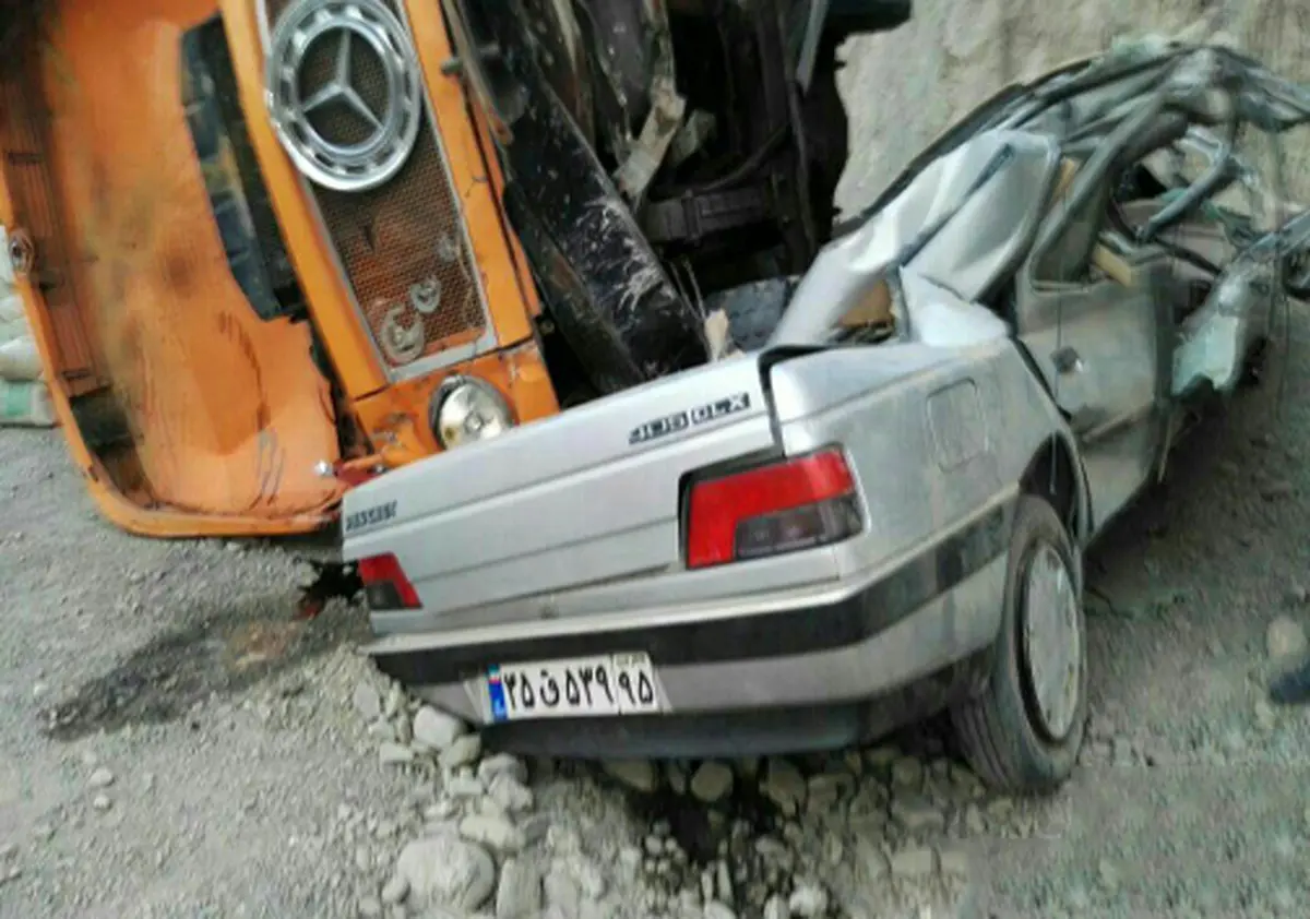 عکس های باورنکردنی از له شدن پژو و راننده اش زیر تریلی+تصاویر