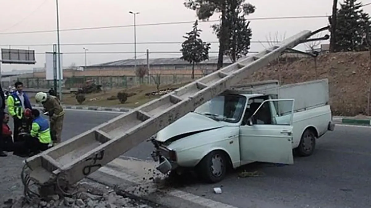 له شدن وانت با سقوط تیرچراغ برق +تصاویر