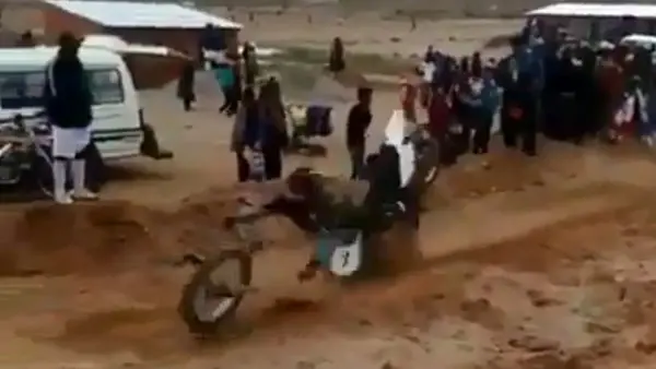 رکنا: موتوسوار عرب که در مسابقات موتورکراس صحرایی شرکت کرده بود در اتفاقی نادر چرخ جلوی موتورش جدا می شود و به شکل وحشتناکی به زمین برخورد می کند.