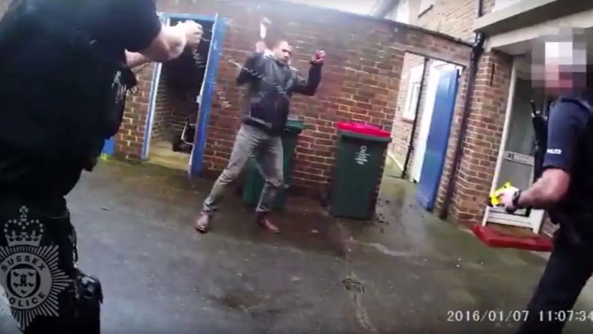 مرد افغان با چکش به جان نیروی پلیس انگلیس افتاد + فیلم و عکس
