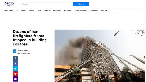 یاهونیوز در گزارشی ضمن بازتاب آتش سوزی و ریزش ساختمان پلاسکو نوشت