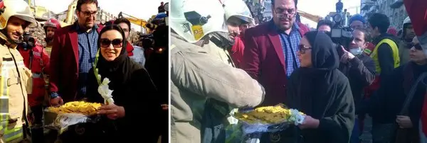 زیبا بروفه به میان آتش نشانان حاضر در پلاسکو رفت+فیلم و عکس