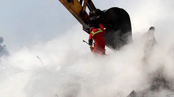 رکنا: عملیات جستجو و نجات برای یافتن اجساد شهدای آتش نشانی در ضلع غربی با حضور سگ های زنده یاب در حال انجام است.
