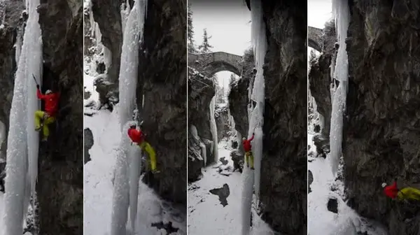 کوهنورد حرفه ای با هوشیاری زیاد خود را از این شرایط نجات می دهد . این کوهنورد که نامش عنوان نشده به خاطر طنابی که به بدن خود متصل کرده در لحظه سقوط Fall یخ توانسته خود را به موقع از پرت شدن به رودخانه نجات دهد.برای ورود به کانال تلگرام ما کلیک کنید.