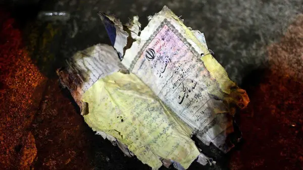 رکنا: سند مالکیت نیم سوخته که در عملیات آواربرداری از زیر آوار پلاسکو خارج شد را در زیر میبینید.