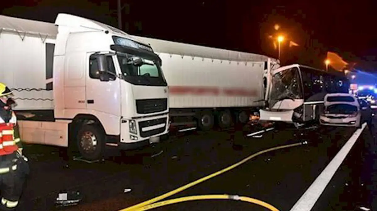 برخورد دو اتوبوس و 4 خودرو در بزرگراهی در صبح روز دوشنبه گذشته دهها تن را زخمی کرد .
