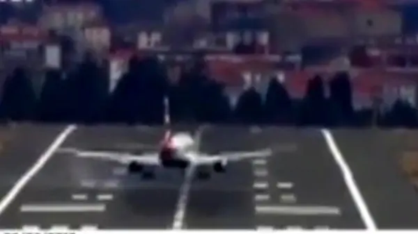 رکنا:وزش شدید باد فرود یک هواپیمای مسافربری را در فرودگاه «سنسباستین» اسپانیا دچار مشکل کرد.