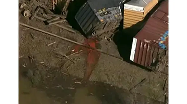 خارج شدن قطار از ریل در کالیفرنیا + فیلم