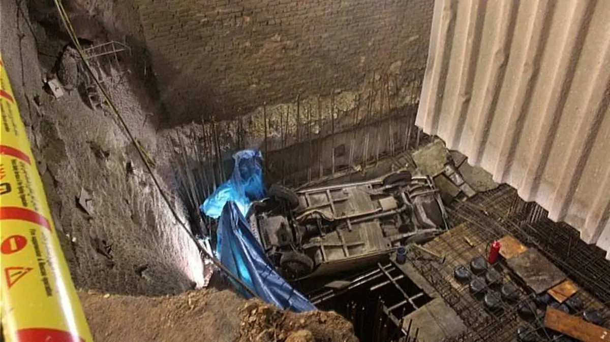 سقوط آزاد وانت پیکان به زمین گودبرداری شده + تصاویر