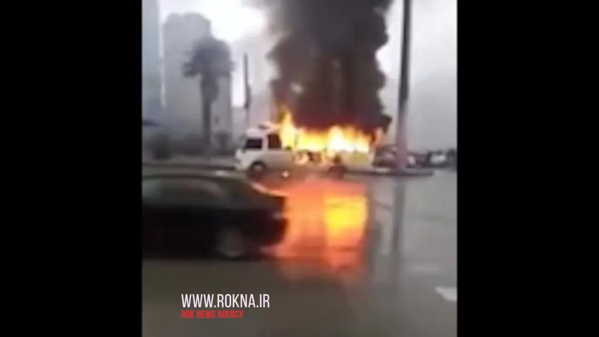 راننده در اعتراض به جریمه مینی‌بوس را در برابر دوربین آتش زد + فیلم و عکس
