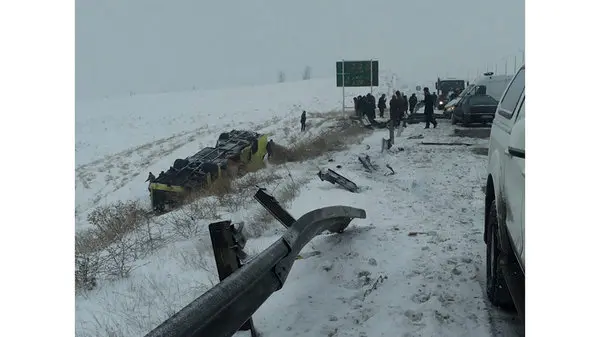 واژگونی اتوبوس در جاده برفی چناران +عکس