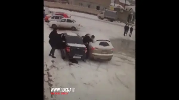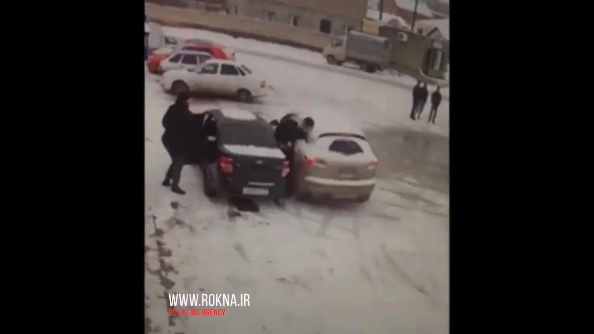 رکنا: یک مرد که در مسیری برفی از ماشین پیاده شده بود بین دو ماشین گرفتار شد.