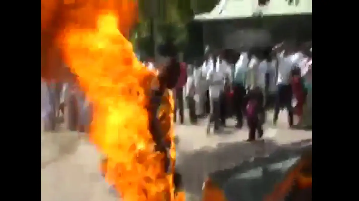 این مرد بودایی بااینکه با ممانعت دیگران مواجه می شود ولی اعتنایی نمی کند و خود را در برابر بازار شهر بنبئی هند آتش می زند که در این میان پیرمردی که مانع شده بود نیز آتش می گیرد. و مردم در صدد خاموش کردن مرد بودایی برآمده و در آخر می بینیم که زنده می ماند. علت این اقدام نامعلوم است. برای ورود به کانال تلگرام ما کلیک کنید.