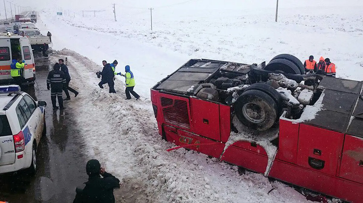 این اتوبوس 45 مسافر داشته که مرگ پنج تن از آن ها تایید شده است. عملیات رهاسازی هشت تن از محبوسان در لاشه این اتوبوس ادامه دارد و تاکنون نیروهای امدادی موفق به خارج کردن یک تن از محبوسان شده اند. این اتوبوس در شانه سمت راست جاده واژگون شده است.