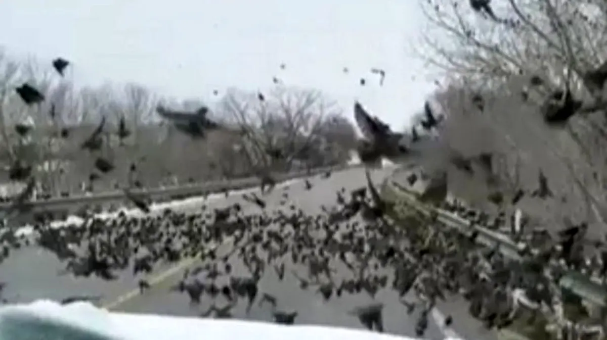 این زن به همراه اعضای خانواده اش در حال رانندگی در یکی از جاده های اطراف شهر بوده که با دیدن هجوم پرندگان شوکه شده اند .