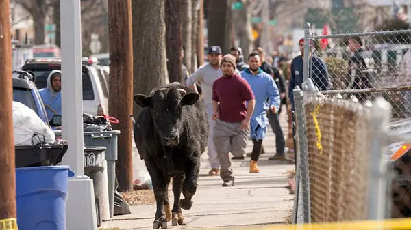 این گاو از کشتارگاهی در نزدیکی نیویورک فرار Escape کرده و خود را به مرکز اصلی شهر رسانده و به این طرف و آن طرف فرار میکرد.