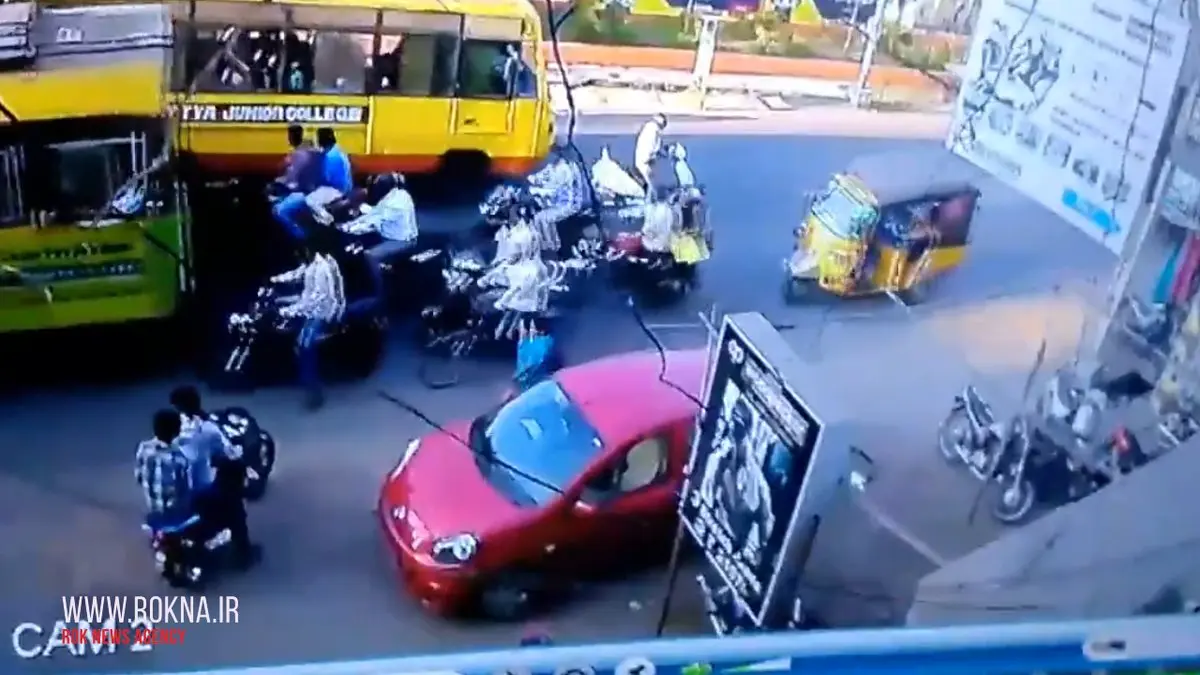 یک دستگاه اتوبوس در آندرا پرادش هند در اقدامی دیوانه وار چند موتور سیکلت را زیر گرفت.