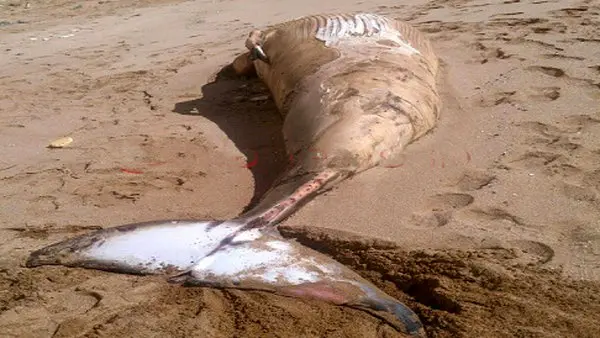 رکنا: لاشه نهنگ گوژ پشت عظیم الجثه درساحل چابهار پیدا شد.