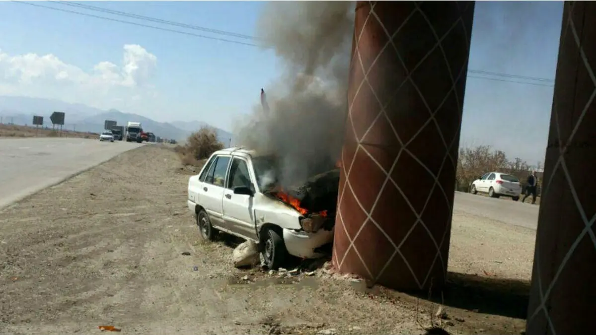 خودروی پراید که با سرعت به ستون بتونی پل روگذر برخورد کرده بود دچار حریق شده بود که آتش نشانان پس از خاموش کردن آتش 2 سرنشین داخل خودرو را بیرون کشیدند.
