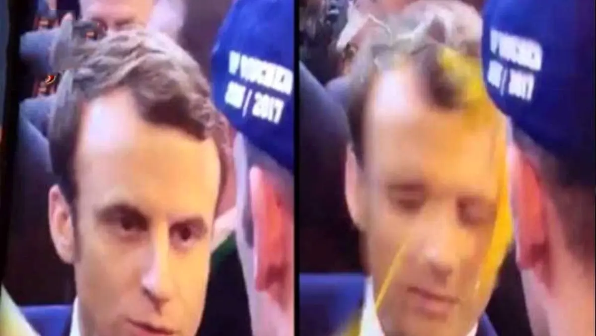 رکنا: امانوئل ماکرون نامزد انتخابات ریاست جمهوری فرانسه که بیشترین شانس را برای پیروزی در این انتخابات دارد، با ضربه تخم مرغ به پیشانی خود مواجه شد.