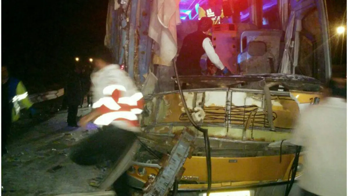 عکس های هولناک از تصادف بامدادی اتوبوس مسافربری با تریلر جاده مشهد