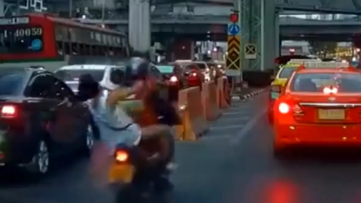 رکنا: دراین ویدئو شاهد زمین خوردن ترک نشین موتور در کشور تایلند میباشید.