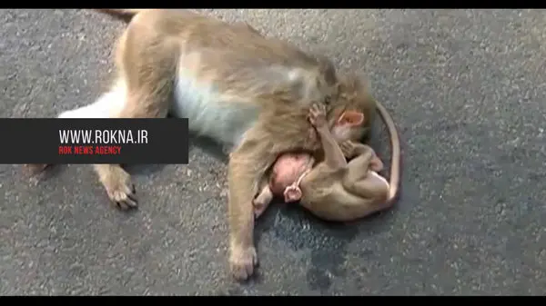 رکنا: بچه میمونی در یکی از ایالت های هند پس از تصادف و فوت مادرش در خیابان نمی خواست جنازه مادرش را رها کند.