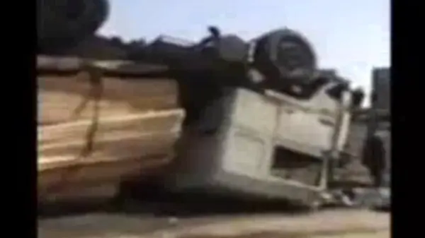 تریلی هجده چرخ با بار در اتوبان کرج چپ کرد + فیلم