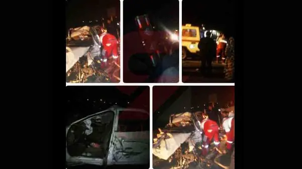 تصادف دو کامیون با یک سمند دو کشته داد + عکس