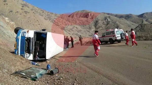این مینی بوس پس از برخورد به تپه خاک با 17 سرنشین واژگون شد.