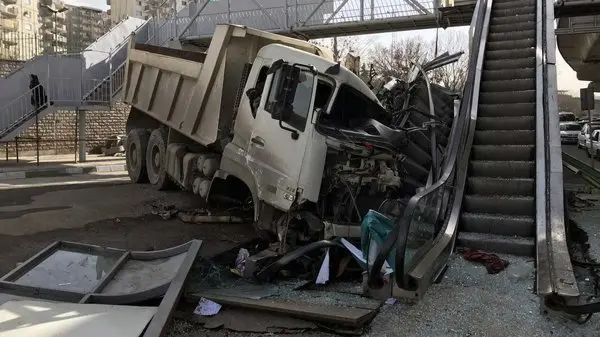 عکس کامیونی که به پله برقی نوبنیاد کوبید و مچاله شد