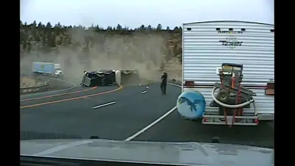 در این فیلم می بینید راننده کامیون حمل سوخت به دلیل سرعت بالا و پیچ تند تعادل کامیون از دستش خارج میشود و باعث واژگونی کامیون میشود.برای ورود به کانال تلگرام ما کلیک کنید.