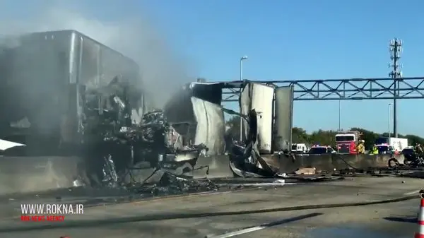رکنا: سیگار کشیدن راننده، کامیون حامل 66 هزار لیتر سوخت در اتوبان ذوب کرد.