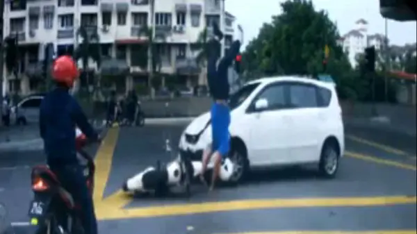 یک موتورسوار در کوالالامپور پایتخت مالزی پس از عبور از چراغ قرمز با یک خودرو تصادف Crash شدیدی کرد اما جان سالم به در برد.برای ورود به کانال تلگرام ما کلیک کنید.
