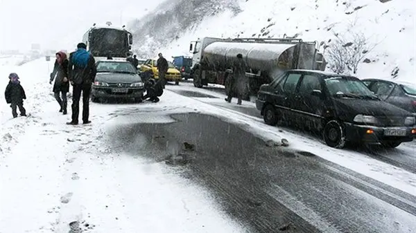 ترافیک پر حجم در جاده چالوس/ محور کرج – چالوس برفی است