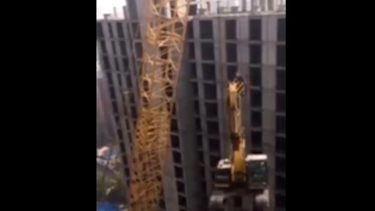 این فیلم را ببینید /جابه جایی دلهره آور بیل مکانیکی در میان برج در هم تنیده + فیلم