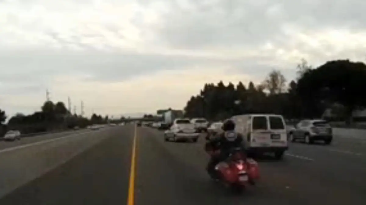 زمین خوردن دردناک راننده موتور در اتوبان+ فیلم