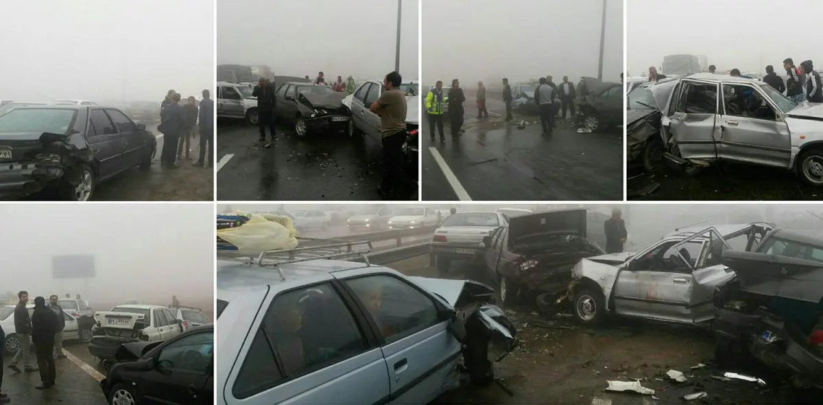 فیلم اولین برخورد خودروها در تصادف زنجیره ای اتوبان مشهد
