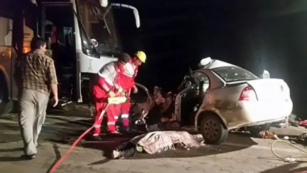 مرگ۴ عضو یک خانواده بر اثر برخورد اتوبوس و خودروی سواری+ عکس