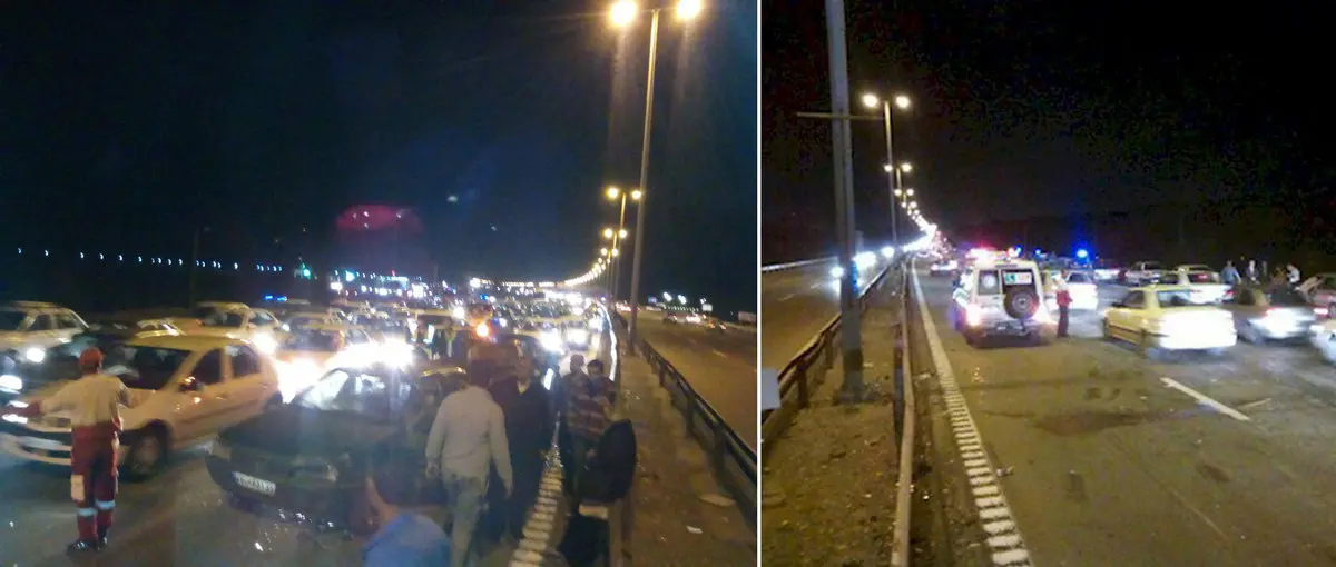 تصادف زنجیره ای 23 خودرو در اتوبان قم+عکس