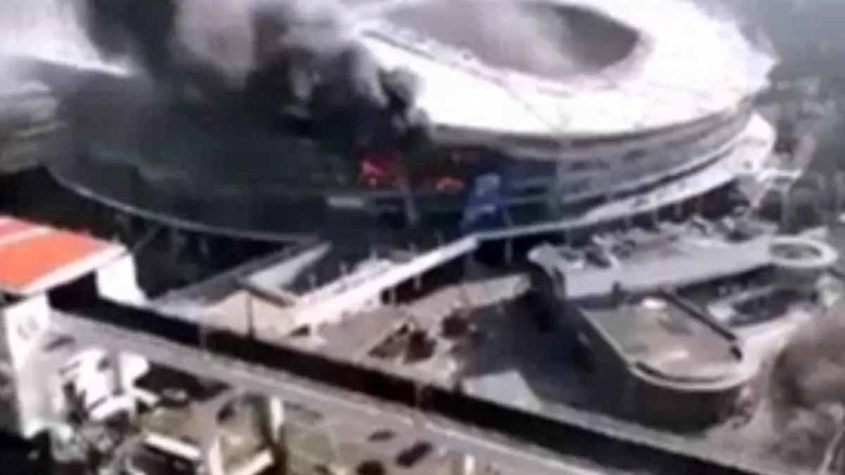 فیلم لحظه آتش سوزی بزرگ ورزشگاه فوتبال شنهوا+ فیلم