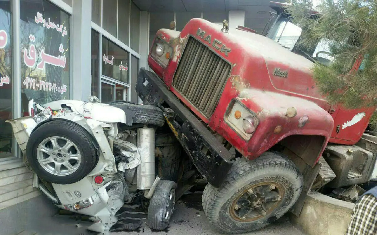 باور می کنید این حادثه فقط یک مصدوم داشت+عکس پرس شده یک سواری زیر تریلی در صوفیان