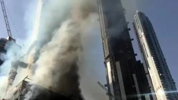 رکنا: نیروهای دفاع شهری دبی، صبح یکشنبه، آتش سوزی برج در حال ساخت «فونتین ویوز» دبی را مهار کردند.