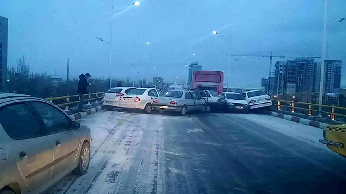 صبح امروز 30 خودرو بر روی پل Bridge گلکار شهر تبریز به دلیل برف و لغزندگی با هم برخورد کردند.