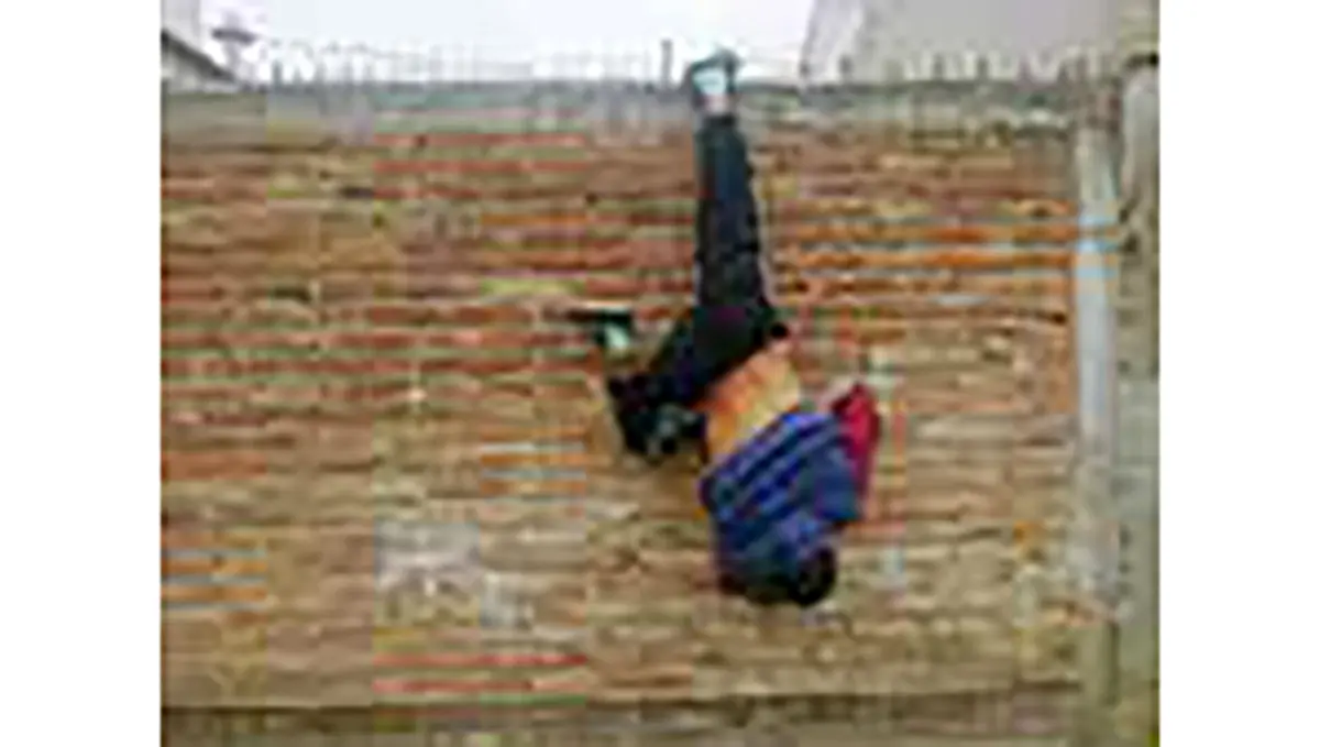 عکس دزد بدشانسی که بین زمین و آسمان آویزان ماند