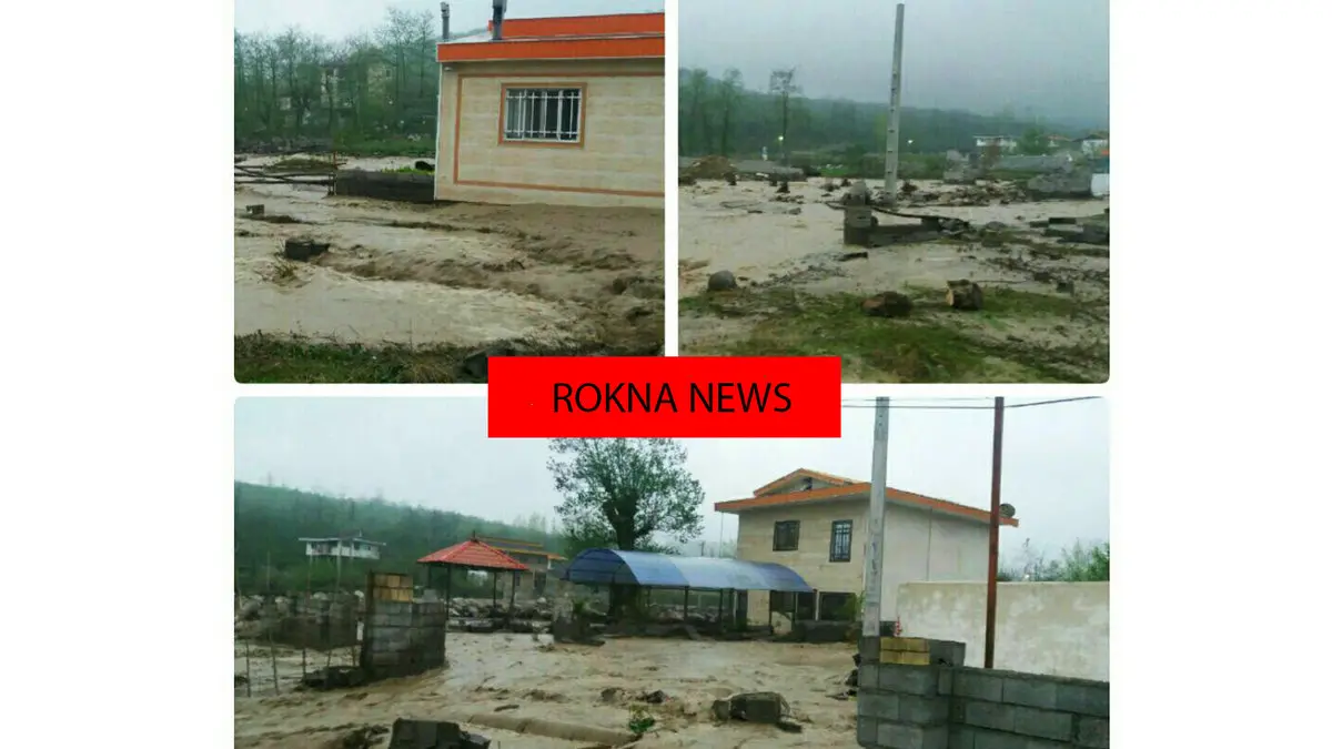 رکنا: بارش شدید و طغیان رودخانه ابتدای جاده دوهزار در تنکابن، احتمال تخریب منازل وجود دارد.