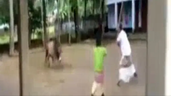 مرد هندی که قصد داشت تا گاو خشمگین را کنترل کند بر اثر حمله گاو به خودش آسیب دید. برای ورود به کانال تلگرام ما کلیک کنید.