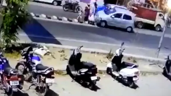 خانوادهای در شهر پونه هند منتظر خلوت شدن خیابان برای عبور از آن بودند که ناگهان خودرویی اعضای این خانواده را زیر گرفت.
