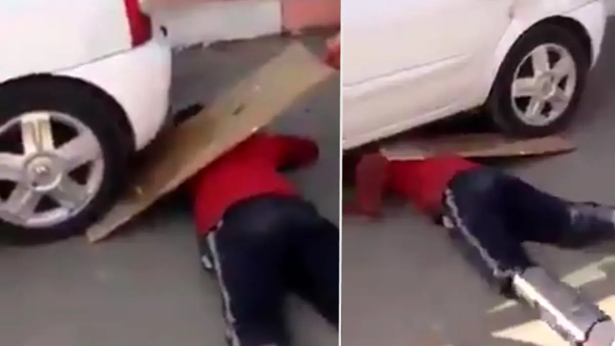 رکنا: مردی که قصد داشت در یک آزمایش خیابانی، رد شدن خودرو از روی بدن خود را به نمایش بگذارد دچار حادثه شد.