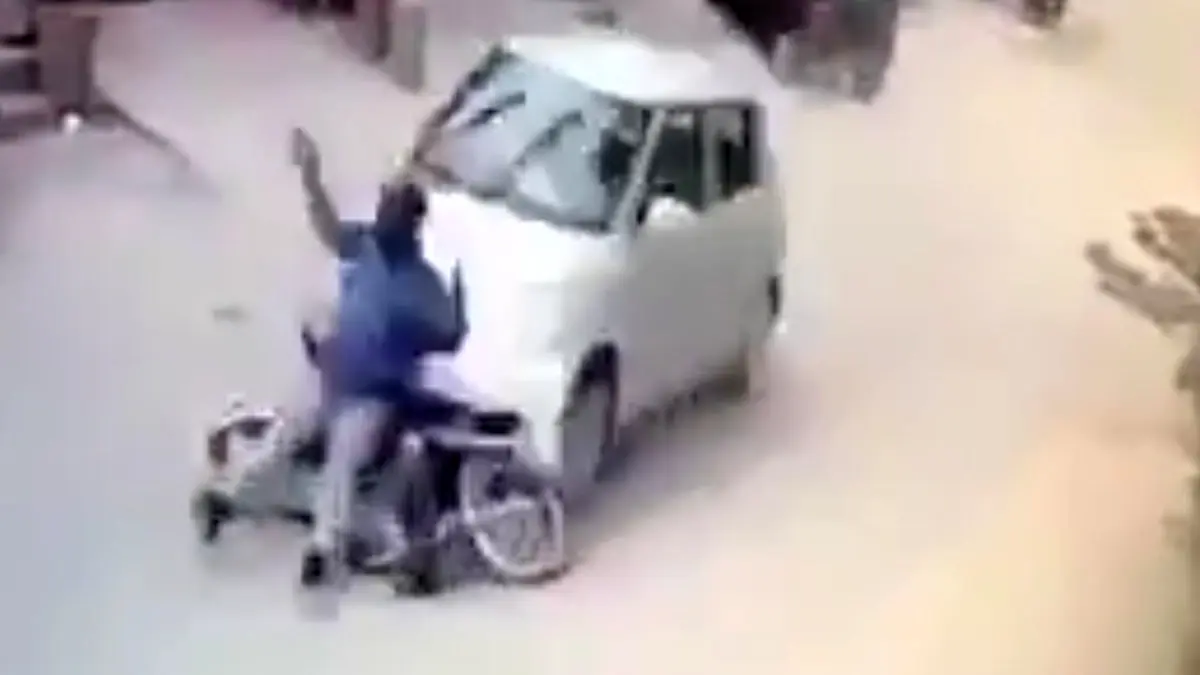 راننده ماشین دزدان موتورسوار را بدجور ادب کرد+ فیلم
